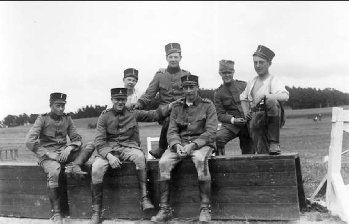 Byggande av prishoppningsbana sydöst K 3 kasern, Dunkehallshöjden i bakgrunden. Hinderhandräckningen tillfällig rast.