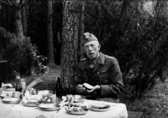 Militärbefälhavaren general Folke Högberg vid en "fältlunch".