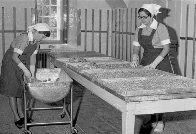 Proviantmagasinet (by 507) IFV. Tillverkning av vakuumtorkade soppor. Här arbetade ordinarie arbetsledare med tillfälligt anställda kvinnor.