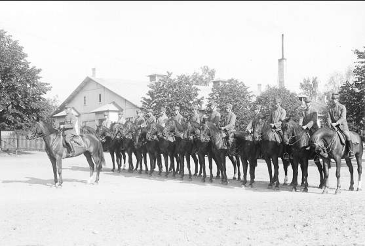 Titel: Avlämning före utbildning i ridning. I bakgrunden manskapsmatsalen.