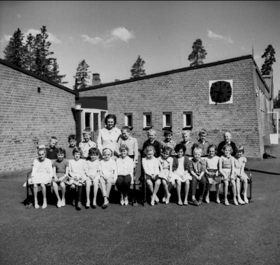 Klassfoto från Södra Skogens skola, Karlsborg, 1962. Lärare: Dyrssen. Endast neg finns.