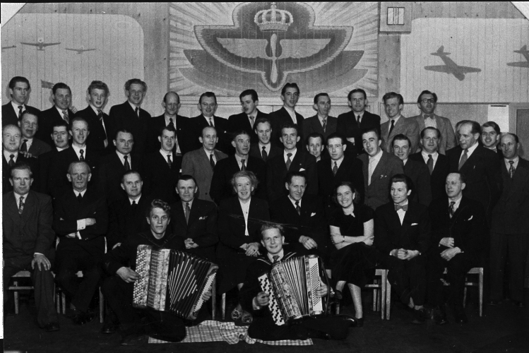 F6 Karlsborg 1952. Dåvarande förmannen Erik Petterssons 50-årsfest på värnpliktsmässen, marketenteriet. Namnlista fills i albumet samt som Word-dokument. Albumet är en del av en donation från Karl-Axel Hansson, Karlsborg. Förteckning över hela donationen finns i albumet samt som Word-dokument.