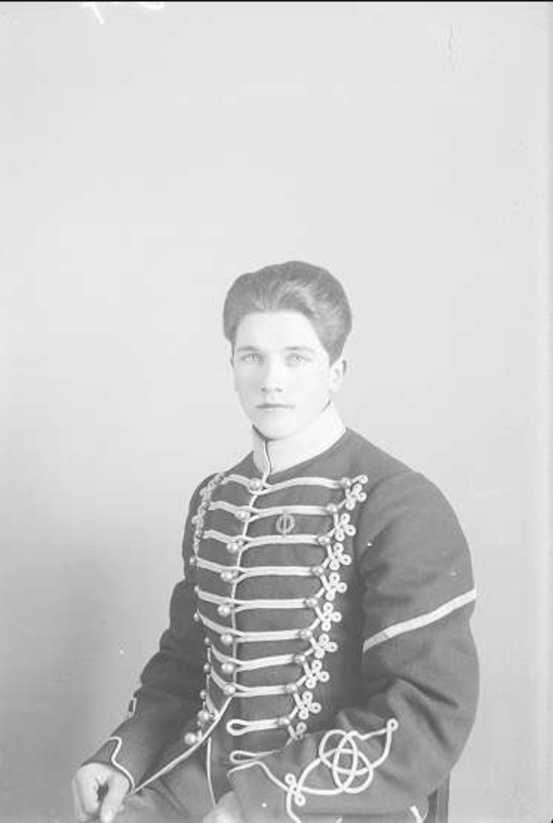 Livhusar med godkänd korpralskola, ett "skolstreck" på vänster ärm.