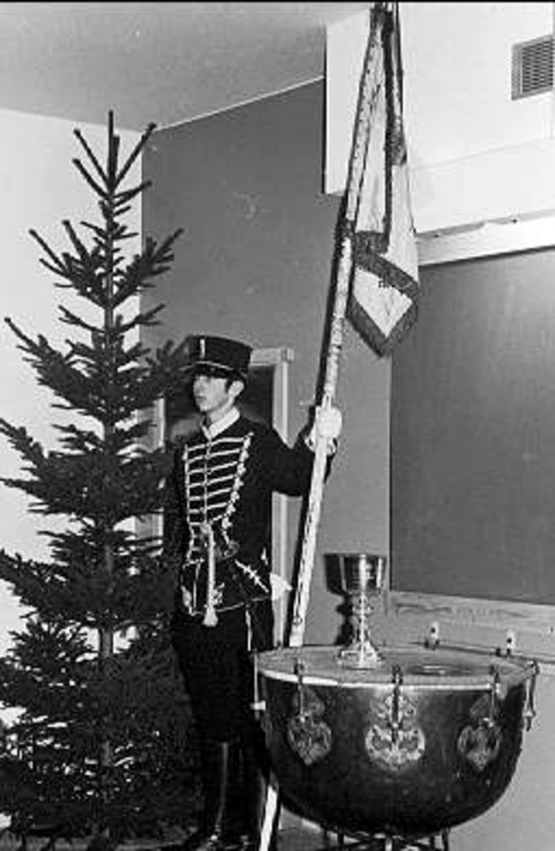 Regementets standar och kommunionskärl. Befälselev Anders Johansson, senare officer och överstelöjtnant vid K 3.
