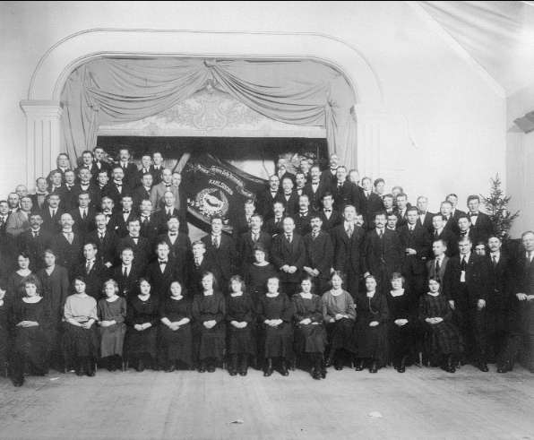 Julfest i teaterbio ca 1910, Försvarsverkens civila förbund avd 9 Karlsborg. Byggnaden revs sommaren 1998.