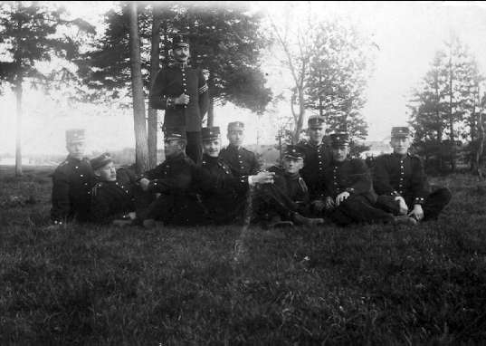Infanterivolontärskolan Karlsborg, senare rekrytskolan för infanteriets off- och res. off. Aspiranter, 1878 - 1927. Reservunderbefäl 1901. Namn: Erling, Wengström, Nilsson, Hansson, Sjöman, Nordström, Öhrberg, Signell, Sandels, Granqvist.