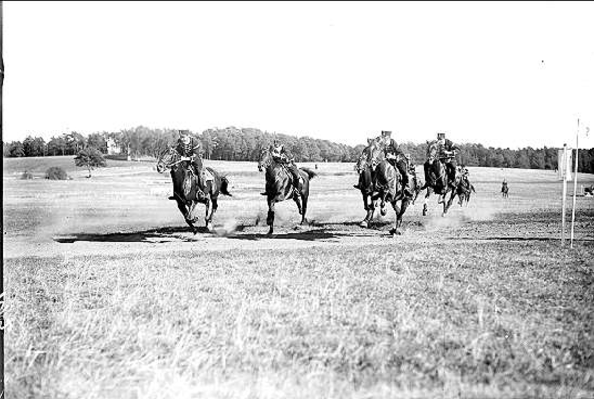 Regementskapplöpningarna 1933 på fältet söder K 3 kasern. Hård strid fram till mållinjen.
