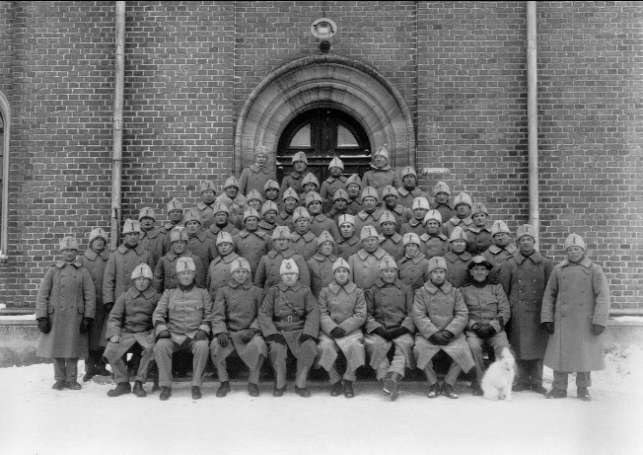 Fästningen, luftvärnet utanför 2:a batteriet år 1940. Beredskap med bl.a. Karl Jansson, Älgarås. Gåva av Anna Jansson, dotter till Karl Jansson.