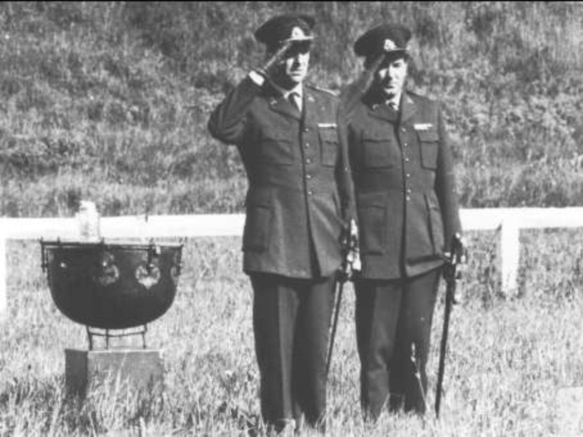 Sekundchefen med utbildningsofficer tar emot regementet för korum på hoppningsbanan.