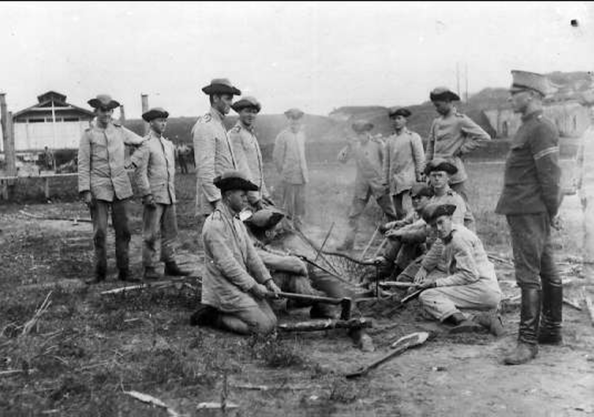Soldater ur Göta ingenjörkår 1913-14. Kokning bakom slutvärnet.