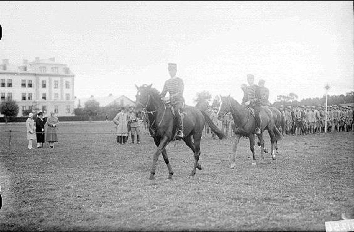 Regementskapplöpningar på övningsfältet söder K 3 kasern. På väg till start. Närmast kameran: Rolf Örn, Lars af Sillén.