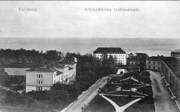 Fästningen. Del av östra delen av slutvärnet. Rakt fram i bild sädesmagasinet samt till vänster östra befälsbyggnaden. Vykort.