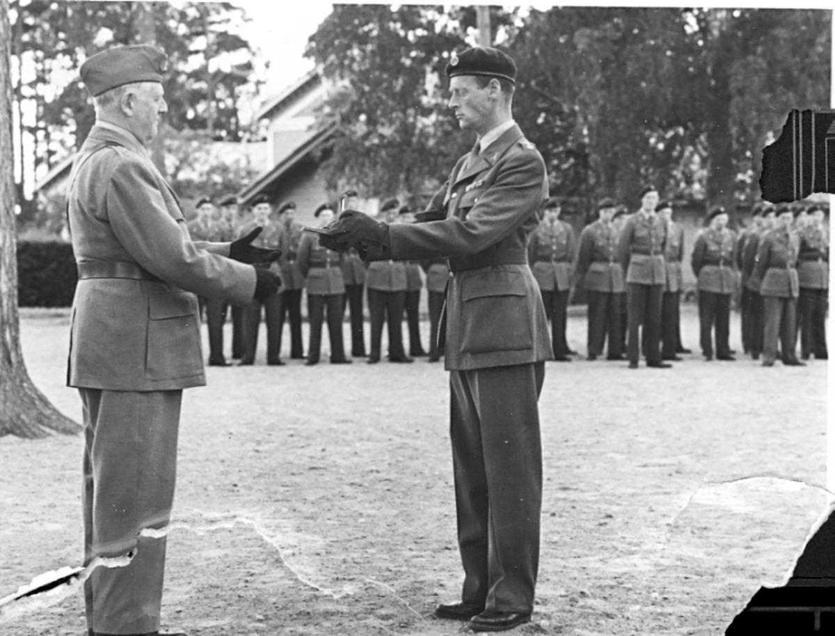 Fallskärmsjägarskolan Karlsborg 1957.Nya fallskärmsjägare.Från vänster:Erensvärd, Wrang.
