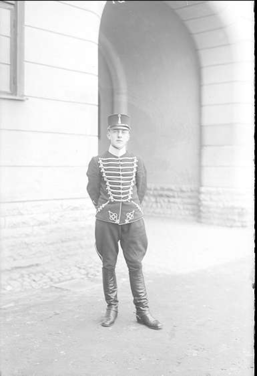 Livhusar i uniform m/1895 (m/ä) utanför valvet vid K 3