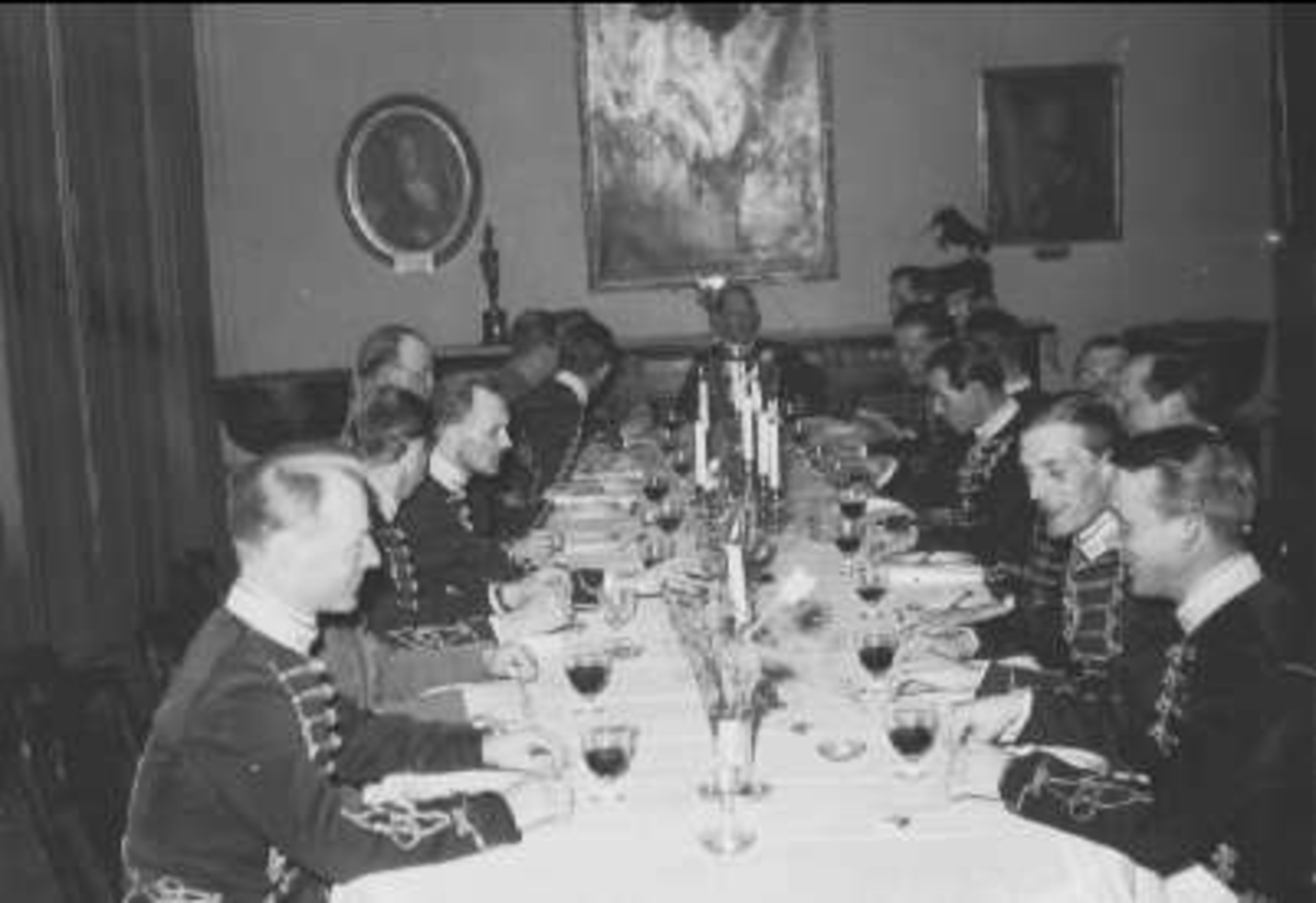 K 3 mässmiddag för Ryttmästare Folke Linton. Middagsbordet.