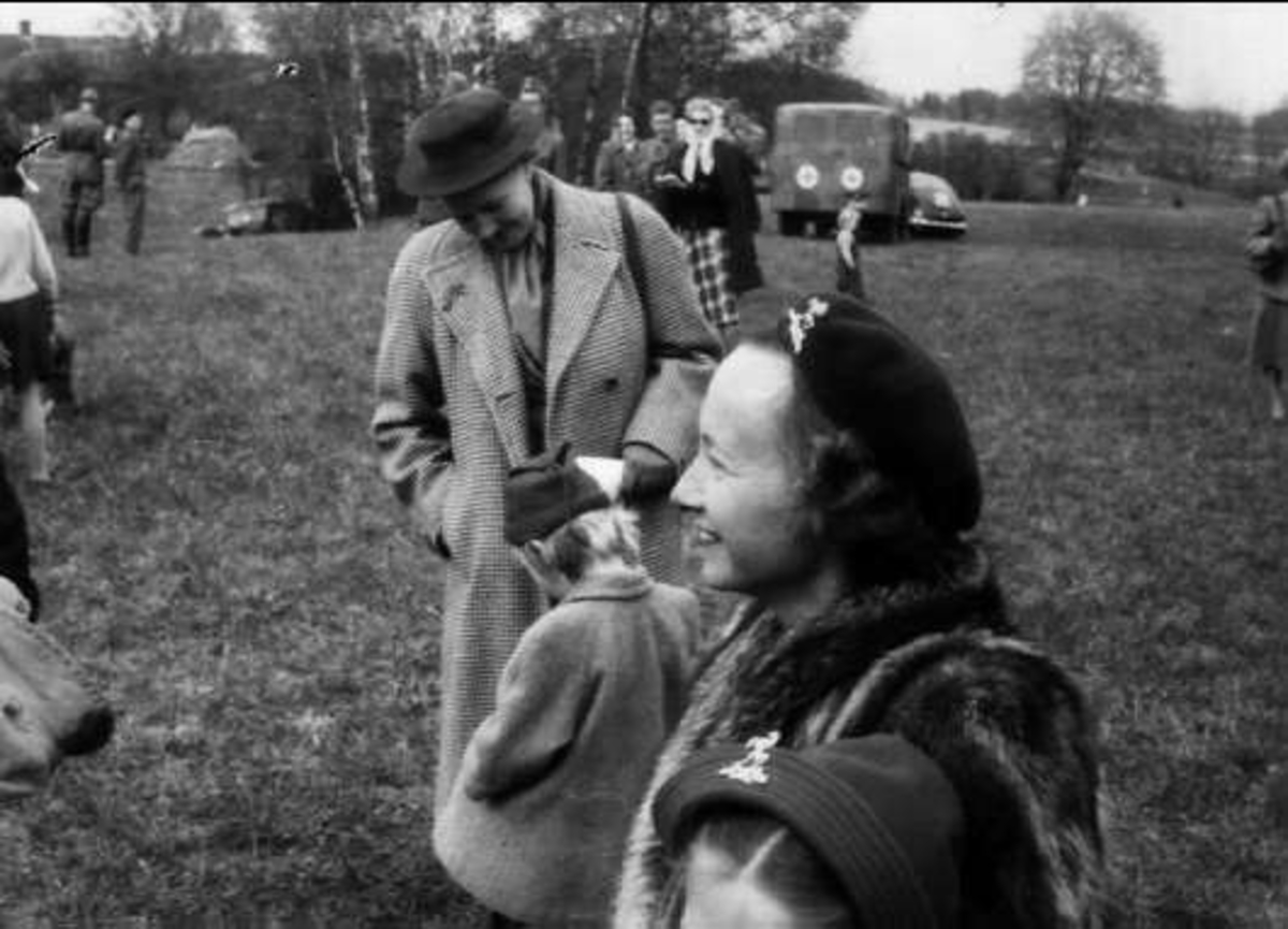 Cecilia Lewenhaupt till höger, född Beck-Friis, maka till ryttm Sten Lewenhaupt med sin svärmor Ebba Lewenhaupt, född Falkenberg af Trystorp, moder till de båda K 3-ryttmästarna Claes och Sten Lewenhaupt. Barnet är Charlotte Lewenhaupt. Dotter till Cecilia och Sten Lewenhaupt.