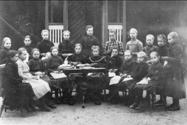 Mölltorp, slöjdgrupp från år 1904. Förstoring 40 x 58 cm. Neg finns.