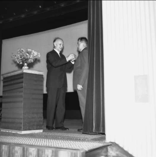 Från en sammankomst av anställda på Ammunitionsfabriken Karlsborg, 1961. Endast neg finns.