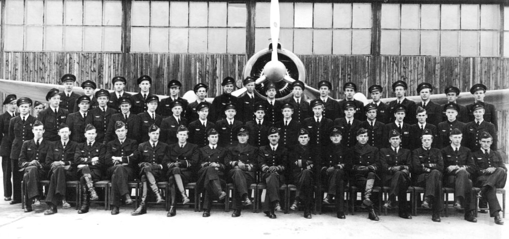 F6 Karlsborg 19476. Första kullen stamflygförare, 27 st anställs. På bilden flygförare, stationsbefäl och signalister. Albumet är en del av en donation från Karl-Axel Hansson, Karlsborg. Förteckning över hela donationen finns i albumet samt som Word-dokument.