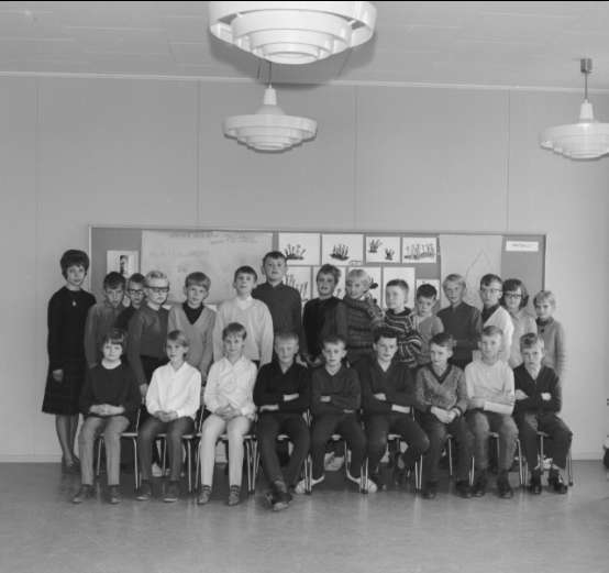 Klassfoto från Strandskolan, Karlsborg, 1965. Klass 4 C. Lärare: Inga Norén. Endast neg finns.