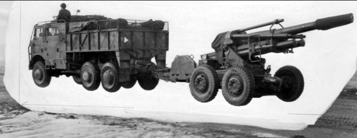 Terrängbil m/42 med 15 cm haub /m 39, vid Skillingaryd 15 september 1953.