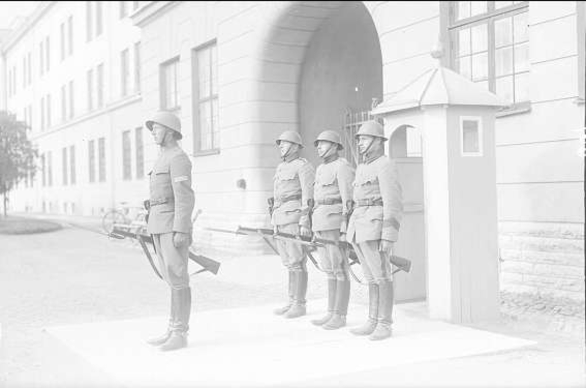 Vaktchefen "tvåstreckad" furir i m/23. Vaktmanskapet i m/10.