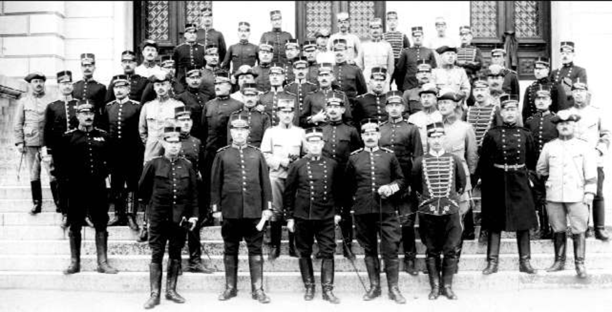 Antagligen norsk general i mitten. Obs! Benläder högsta mode på 10-talet.