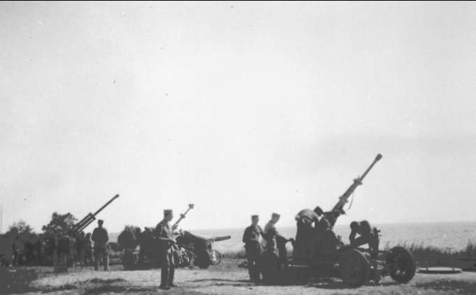 Gräshult, skjutplatsen underbacken omkr 1933 - 38. Skjutning mot bogserat mål. Förstoring 25 x 40 cm.