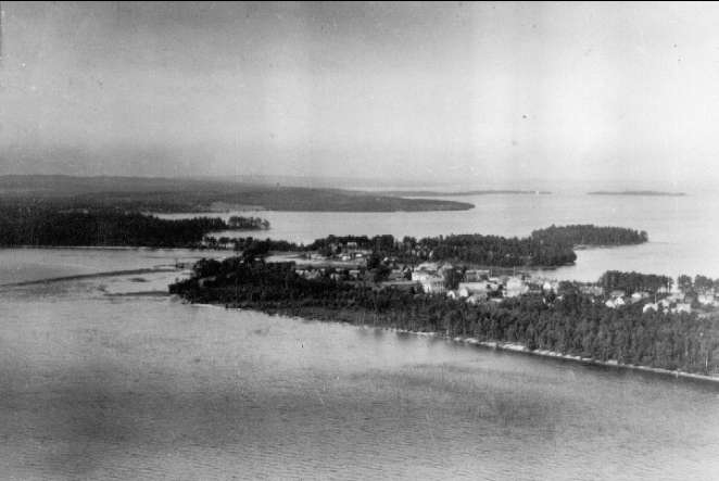 Flygfoto Karlsborg, Rödesund sett från Bottensjön. Fotot taget omkr 1934. Kortet är från K-A Hanssons album.