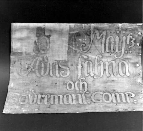 Standar av linne med målad dekor på båda sidor. På ena sidan: K m Adelsfana och Södermanlands komp. På andra sidan: C´G och kungl krona. Ursprungligen blå grundfärg, nu blekt. Stångens längd 249 cm.