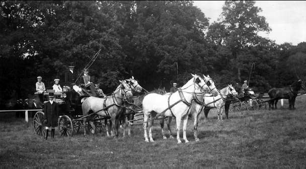 Köruppvisning på österängen, med fyrspann, par och enbett. Strömsholm 1910-11.