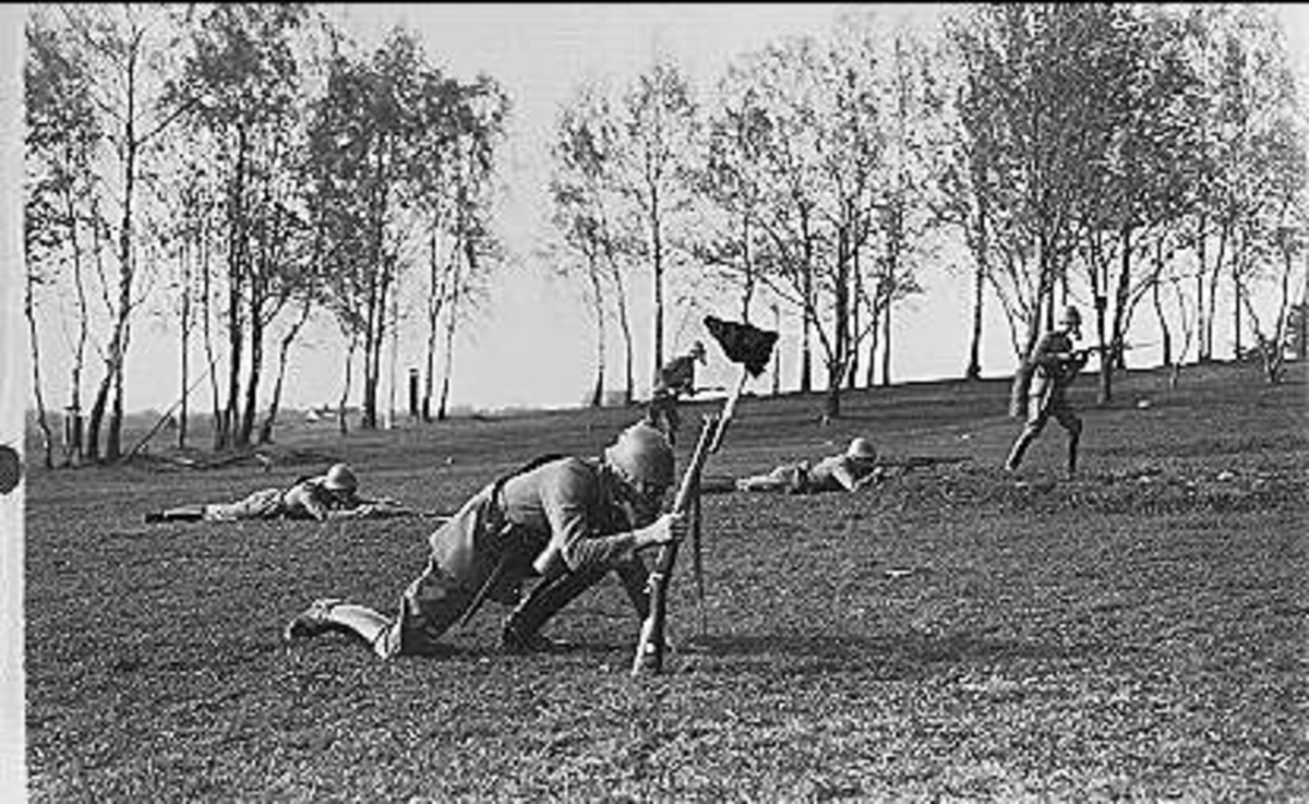 Övning vid björkdungen norr om "Förvaltarbostaden".