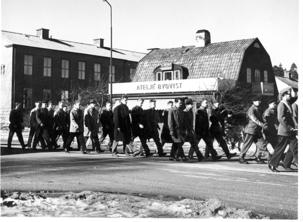 Titel: Fallskärmsjägarskolan Karlsborg 1957. Inryckning.