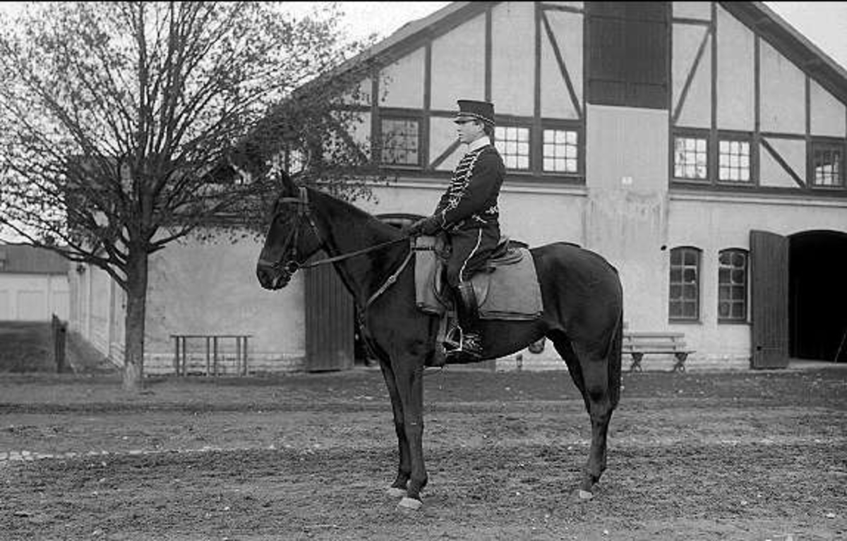 Livhusar med tilldelad stamhäst söder om skvadronsstallet.