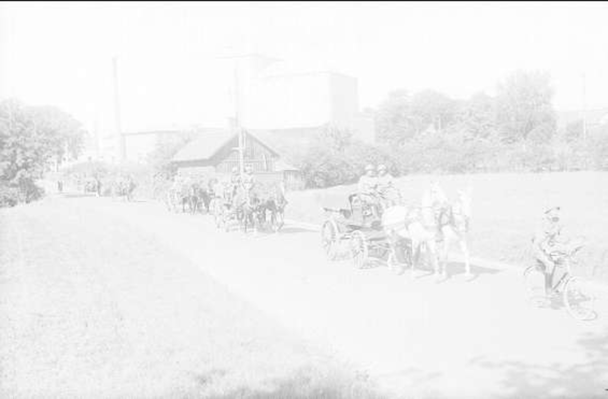 Anspänd packtross ur 4. skv uppbrott till sommarmarsch. På cykel furir Eriksson.