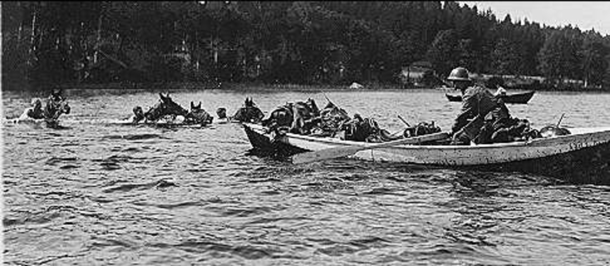 Patrulltävlan: Övergång av vattendrag, 1930-tal.