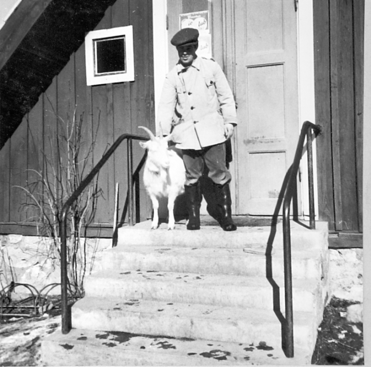 Ridkurs 12/10 1954-13/5 1955 Strömsholm.Maskoten "Kisen framför fiket.Deltagare från Livregementets husarer, K3:Fänrik Westergren, överfurir Fridolfsson och sergeant Ewert Olausson.Förteckning över övriga deltagare finns i albumet.Chef för ridskolan:Överstelöjtnant Gustav Nyblaeus.Förteckning över övriga lärare finns i albumet.