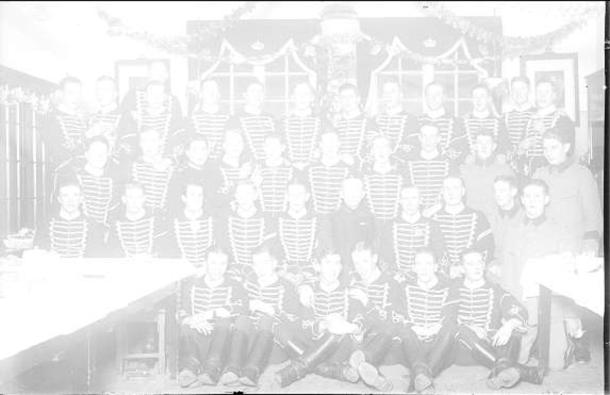Beredskapstroppen firar jul i kasern. I mitten skvadronschefen ryttmästare Rolf Örn.