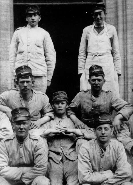 Karlsborg. På trappan till Garnisonssjukhuset år 1911. Endast förstoring 39 x 29 cm.