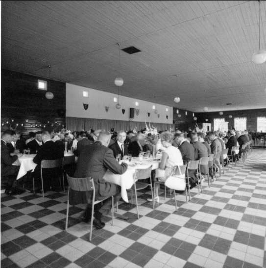 Karlsborg, fästningen. Prinsessan Christinas besök på regementet jubelåret 1969. Här vid lunchen i matsalen.