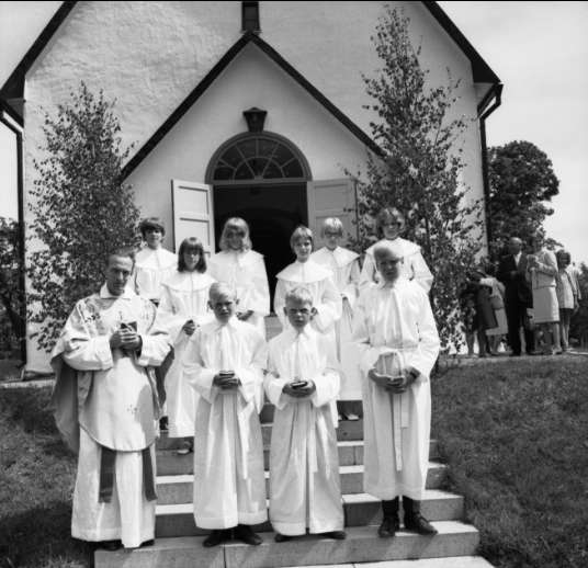 Konfirmandgrupp, Breviks kyrka, 1967. Konfirmandlärare: Sören Thörnblad. Deltagarlista finns i arkivet. Neg finns.