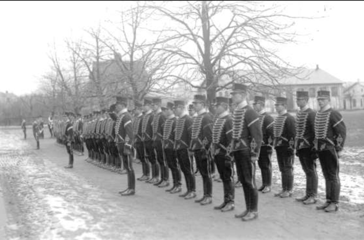 Furirskolorna uppställda för avlämning före marsch till soldathemmet för firande av 4:e december.