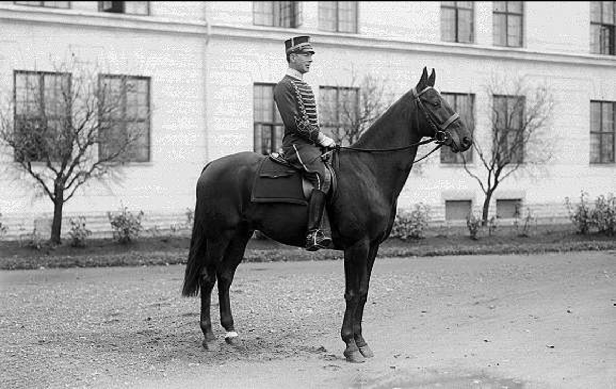 Ryttmästare Harald Strömfelt - en mycket duktig tävlingsryttare - på en av sina tävlingshästar.