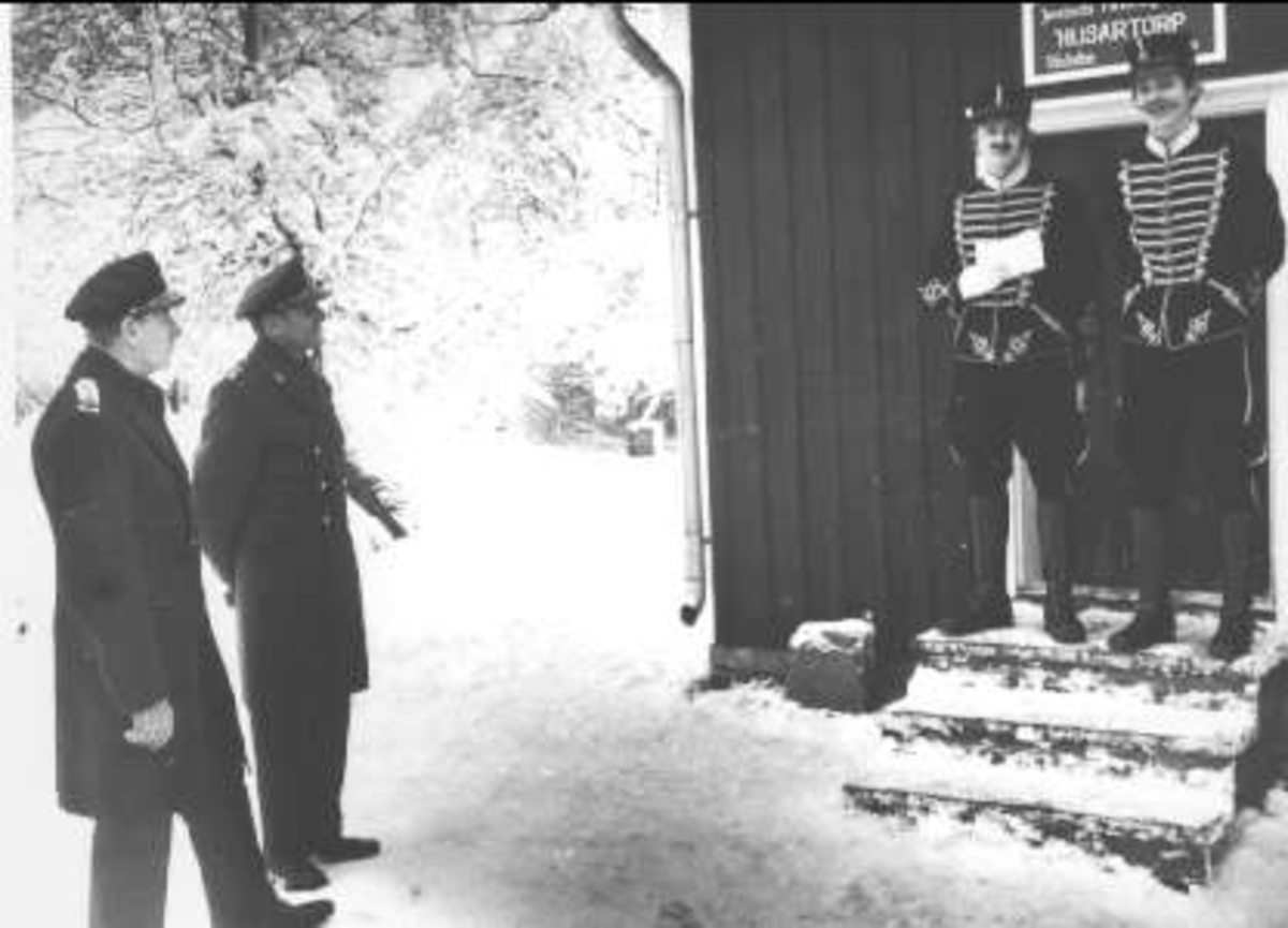 Museichef Stig Aaby-Ericsson visar museet för militärbefälhavaren, 4 dec. Värnpliktiga K 3 var ciceroner i museets alla delar.