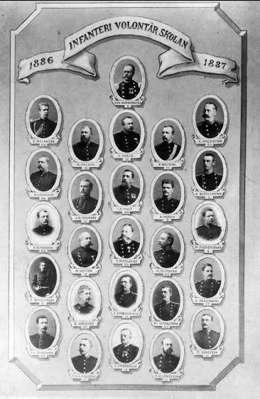 Infanterivolontärskolan Karlsborg, senare rekrytskolan för infanteriets off- och res. off. Aspiranter, 1878 - 1927. Volontärskolan år 1886 - 1887.