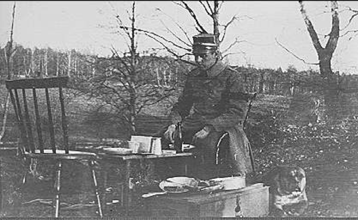 W. Dickson och jag på marsh med krigsinkallade. Vid middagsbordet.
