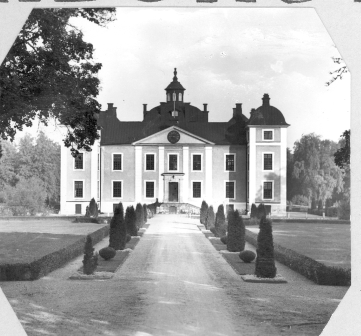 Slottet på Strömsholms ridskola.Ridkurs 12/10 1954-13/5 1955 Strömsholm.Deltagare från Livregementets husarer, K3:Fänrik Westergren, överfurir Fridolfsson och sergeant Ewert Olausson.Förteckning över övriga deltagare finns i albumet.Chef för ridskolan:Överstelöjtnant Gustav Nyblaeus.Förteckning över övriga lärare finns i albumet.