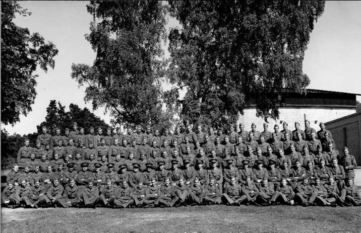 Gruppfoto, andra intendenturkompaniet år 1947. Namnuppgift finns på bilaga till 55004. Foto: Wretmarks Foto, Stockholm.