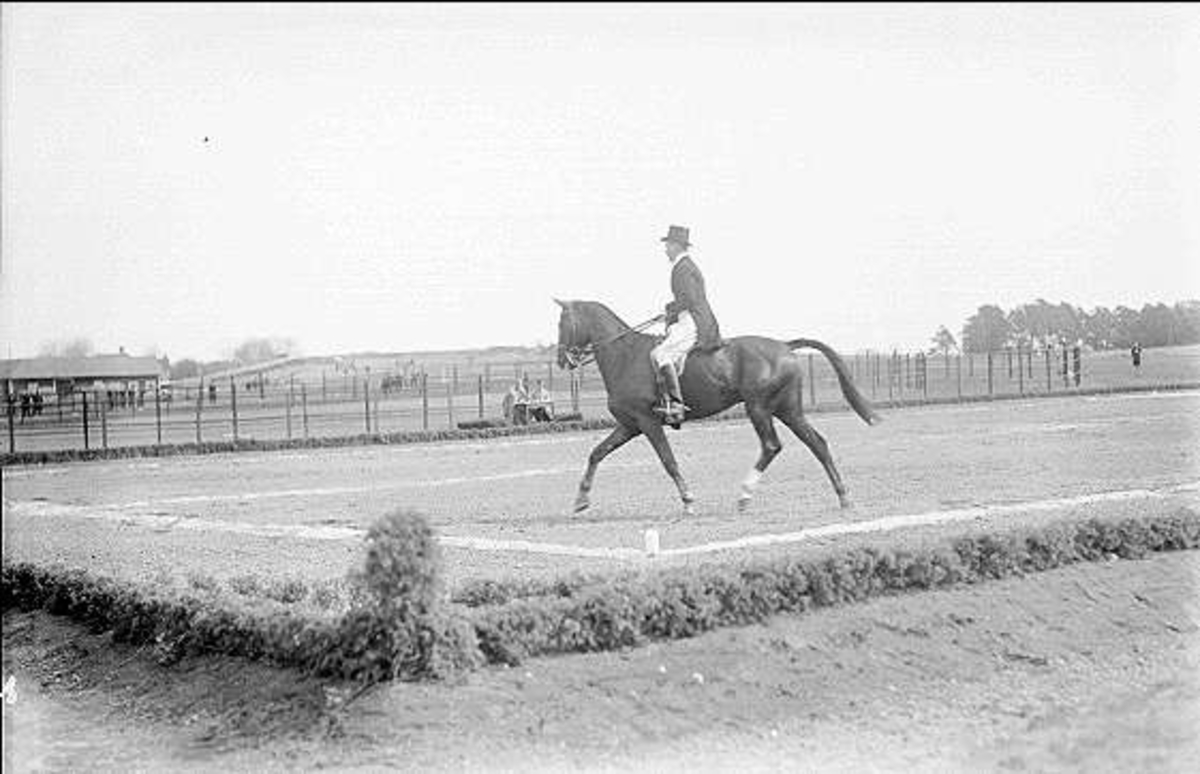 Dressyruppvisning på sandbanan öster om K 3 kasern vid SFK:s tävlingar 1929.