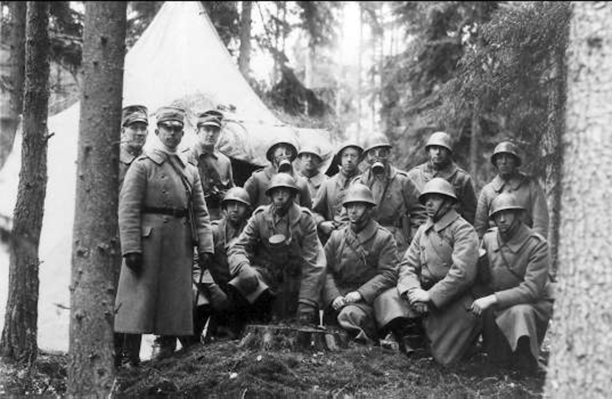 Gemensam utbildning vid k3 för kavalleriets underbefäl. Från vänster: fanj C G Sjöblom, ryttm Hampus Kalmberg och löjtn C-O Palmstierna.